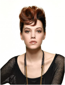 Per creare una cresta d'avanguardia, l'Oreal adotta capelli corti e lisci ai lati e una cresta di capelli ricci sulla fronte.