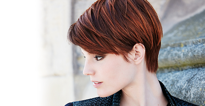 L'Oreal spices up the pixie haircut with shimmering and contrasting lengths.